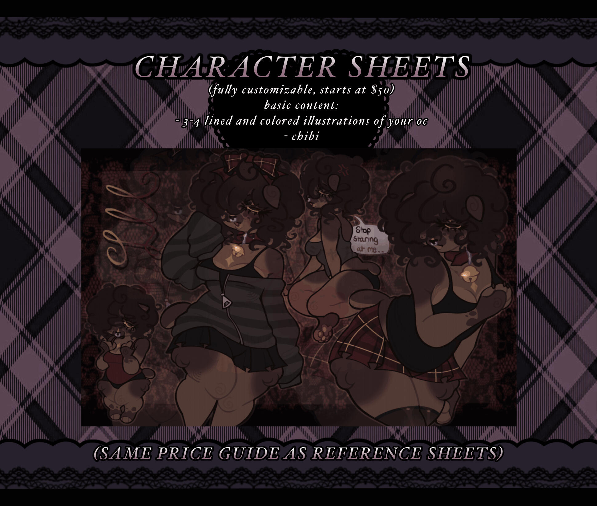 [ PLEASE VIEW THE IMAGES BELOW RELATING TO REF SHEETS AND CHARACTER SHEETS FOR MORE EXACT INFO ]